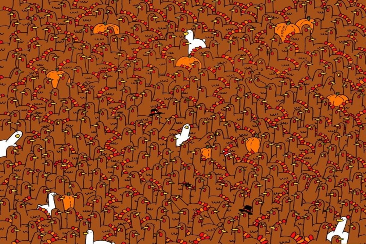 Tem uma maçã perdida em meio a dezenas de perus e o relógio corre contra você. O novo teste visual lança o desafio de localizar a fruta vermelha em apenas 25 segundos, tempo considerado suficiente para quem tem olhos de águia.