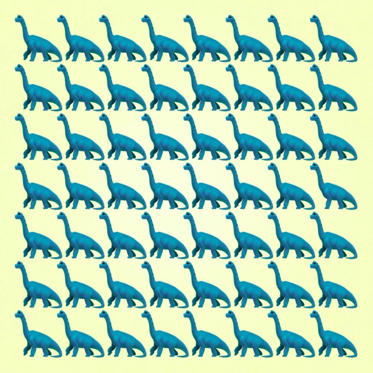 A ilustração contém fileiras de dinossauros na cor azul, todos aparentemente iguais à primeira vista. Porém, um deles traz um detalhe sutil que o torna único. A missão é descobrir qual é o personagem fora do padrão em exatos dez segundos. O teste ganhou popularidade no Reddit e, de lá, saltou para outras plataformas, acumulando curtidas, comentários e competições informais.